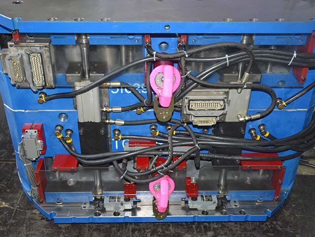 福特電源接頭,我們通過與客人的檢討,對(duì)產(chǎn)品進(jìn)行優(yōu)化,使產(chǎn)品能夠順利包膠,并吹氣加頂出進(jìn)行產(chǎn)品強(qiáng)脫,完成注塑。
