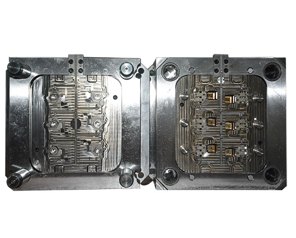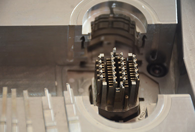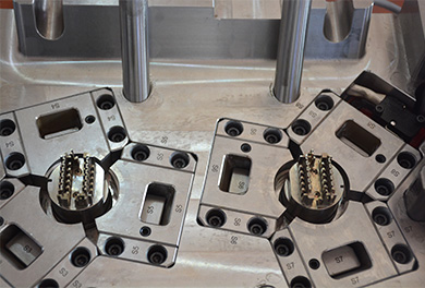 福特電源接頭,我們通過與客人的檢討,對產(chǎn)品進(jìn)行優(yōu)化,使產(chǎn)品能夠順利包膠,并吹氣加頂出進(jìn)行產(chǎn)品強(qiáng)脫,完成注塑。